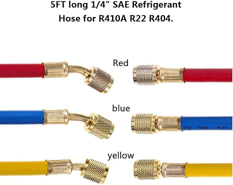 5FT AC Diagnostic Manifold Freon Gauge Set for R410A R404A R22 R134A R12 R22 and R502 Refrigerant AC House Air Condition HVAC 60"