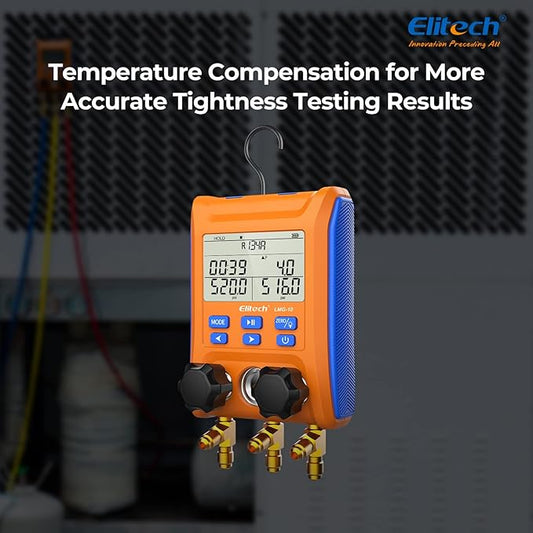 Elitech Digital Manifold Gauge 2-Way Valve with Thermometer Clamps for HVAC Systems, LMG-10